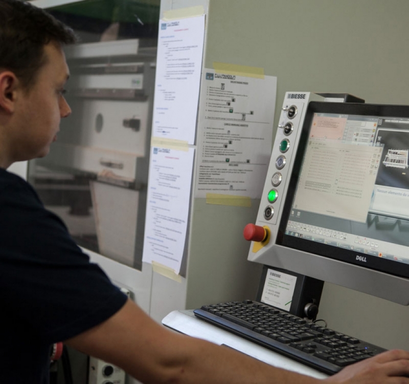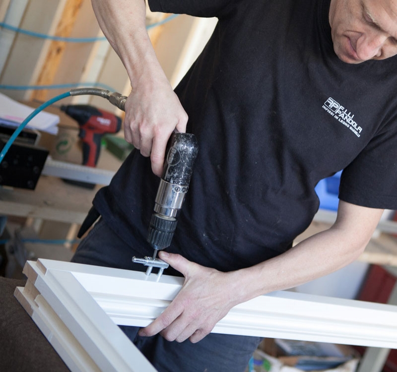 Il nostro centro di lavoro automatizzato è il frutto di anni di evoluzione industriale. Oggi ci permette di creare serramenti personalizzati di ogni forma e dimensione, da quelli ad arco agli alzanti scorrevoli, con massima precisione e controllo dei tempi di realizzazione. La lavorazione parte da materie prime della migliore qualità, selezionate con cura ed esperienza, e continua con processi altamente tecnologici grazie alla macchina a controllo numerico (CNC) WINLINE 16 di Biesse. Si completa con rifiniture a mano e test rigorosi per garantire l'attenzione al dettaglio che solo l'occhio umano possiede. Seguiamo in prima persona ogni fase del lavoro, compresi l'imballaggio, la consegna e il montaggio, per assicurarci che la qualità sia impeccabile dall'inizio alla fine. Il nostro personale interno e specializzato effettua l'installazione in sicurezza e rapidità così da esaltare il design del prodotto.