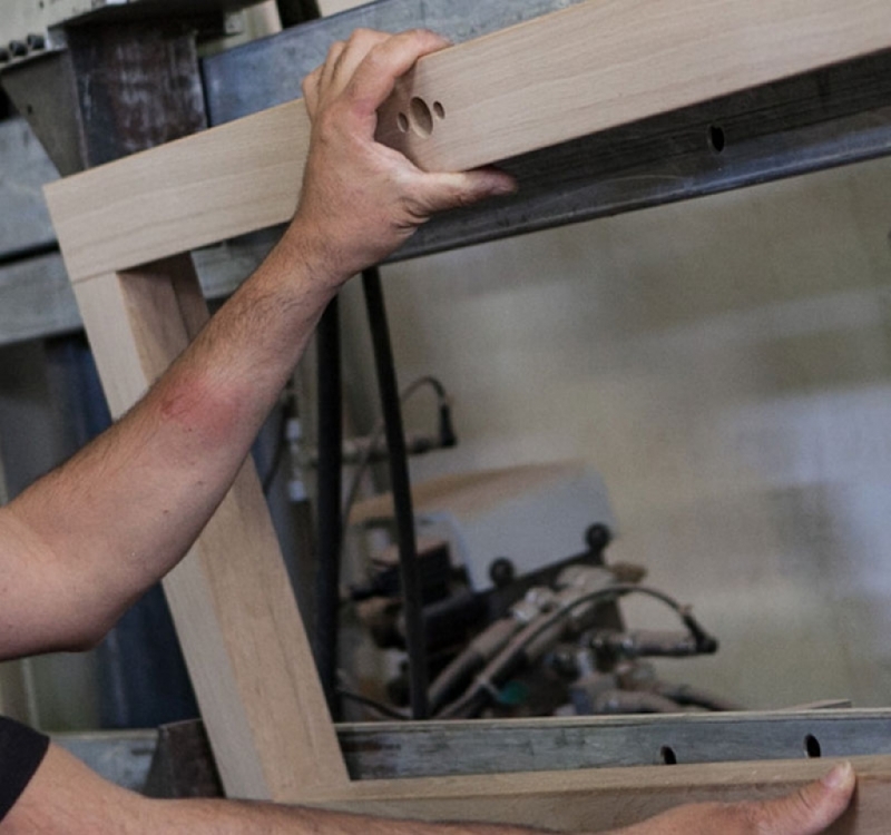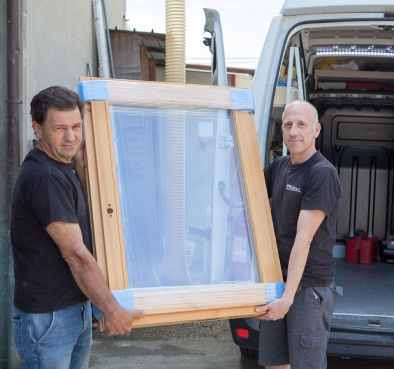 Dopo il prelievo il legname viene lavorato da mani esperte per ottenere il quadrotto che costituirà ante e telai dei serramenti.