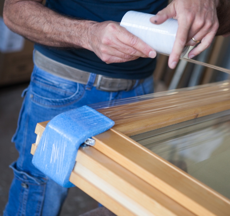 Controllo qualità e test del serramento, imballaggio e stoccaggio in magazzino.